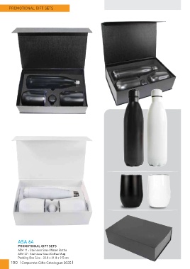 PROMOTIONAL GIFT SETS ASA 64 PROMOTIONAL GIFT SETS ATM 11 : Stainless Steel Water Bottle ATM 27 : Stainless Steel Coffee Mug Packing Box Size : 33.8 x 21.8 x 9.5 cm 100 | Corporate Gifts Catalogue 2025 |